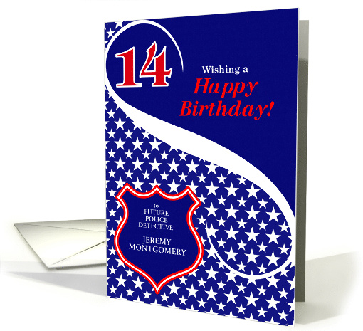For the girl or boy who is turning fourteen and dreams of growing up to be a law enforcement officer, just customize the badge on the card front for a truly unique and personalized 14th birthday card.