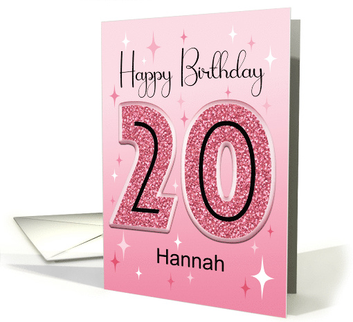 Hannah Custom Name Pink Glitter Effect 20th Birthday Card For Her