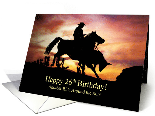Happy 26th birthday or 26th ride around the sun! A western themed birthday with a rugged fun cowboy image.