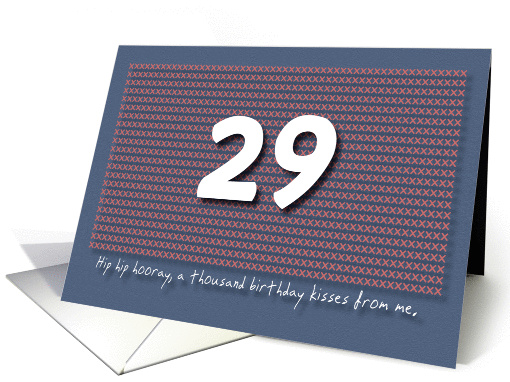 29th Birthday card for a very good friend. The front text: Hip hip hooray, a thousand birthday kisses from me. Inside text: You really are a wonderful human being.Therefore, you are going to be spoiled today!