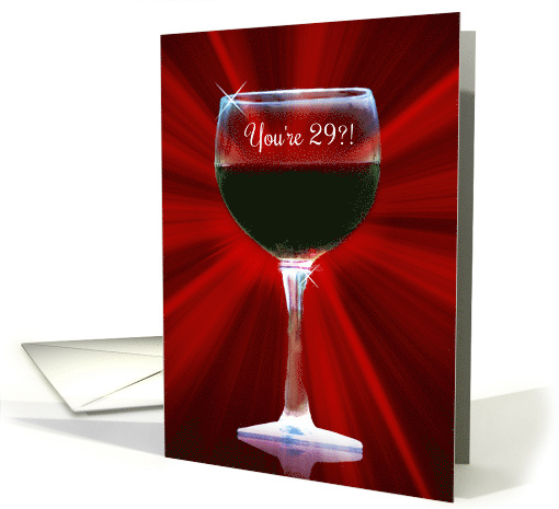 Funny Happy 29th birthday card. It's cocktail time especially on a 29th birthday! Wine humor birthday card.