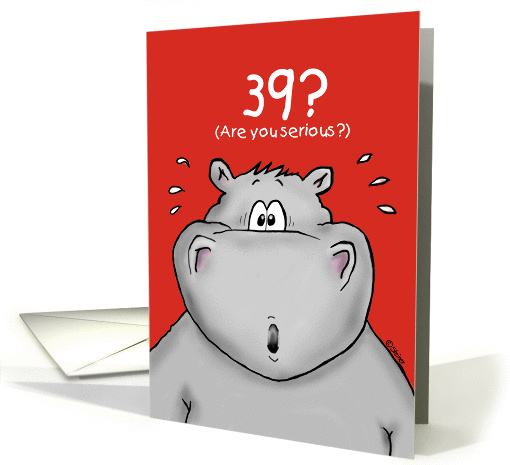 39th Birthday - Humorous, Surprised, Cartoon - Hippo