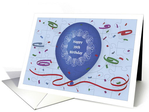 Happy 39th Birthday with blue balloon and puzzle grid