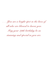 A beautiful bold card for someone celebrating their 39th Birthday. Special people have a way of standing out and are a bright spot in the lives of those they come in contact with, this card gets that massage across.