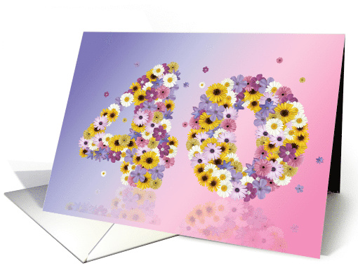 40th birthday card. A fun birthday card with happy numbers made from daisy flowers. A great card for a beautiful lady.