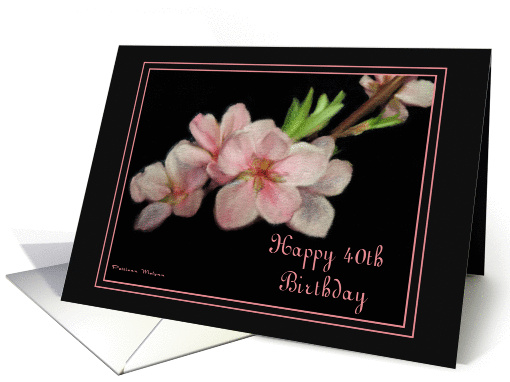 A 40th birthday card with a painting of the decorative flowering tree in my back yard. The soft pinks really pop against the black background.