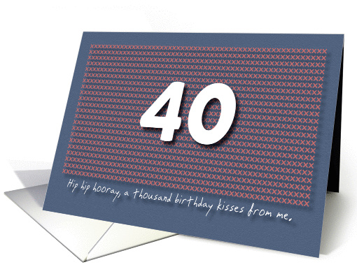 40th Birthday card for a very good friend. The front text: Hip hip hooray, a thousand birthday kisses from me. Inside text: You really are a wonderful human being.Therefore, you are going to be spoiled today!