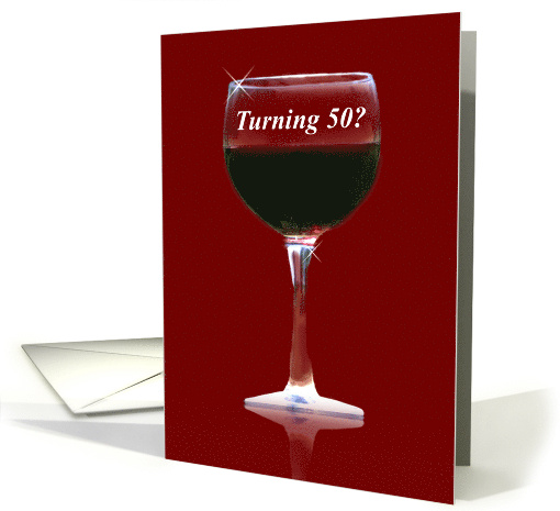 Turning 50 is an incredible milestone! A cheerful birthday card featuring a glass of wine and a playful message to celebrate and enjoy the day.
