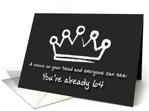 A Birthday card with the age on it. The front text: A crown on your head and everyone can see you're already 64. Inside text: Happy Birthday
