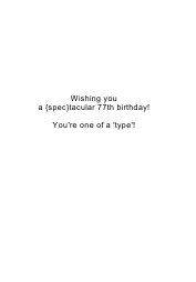 A blue vintage typewriter with a sunburst background. A piece of paper from the typewriter which has the words Happy 77th Birthday in typewriter font and a silhouette glasses. A lovely birthday card for someone special turning 77.