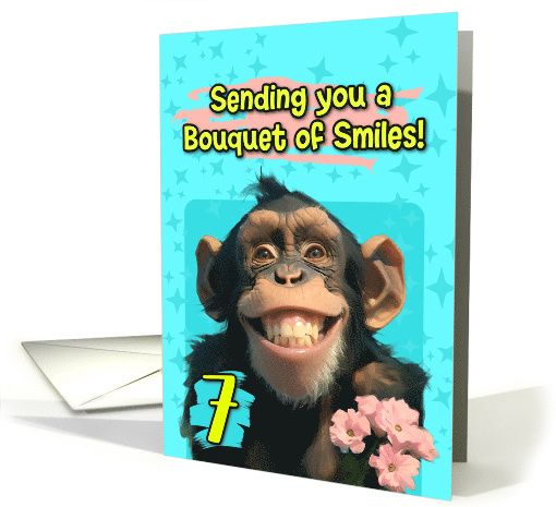 7 Years Old Happy Birthday Smiling Chimpanzee with Flowers