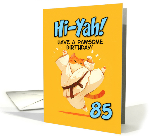 85 Years Old Happy Birthday Cartoon Karate Kick Ginger Cat