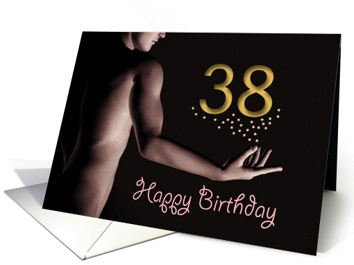 A sexy but tasteful 38th Birthday card with a nude boy for a very good friend with his or her age on the front and inside a text which you can customize