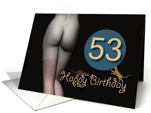 53rd Birthday Sexy Girl with Stockings and playing Cats