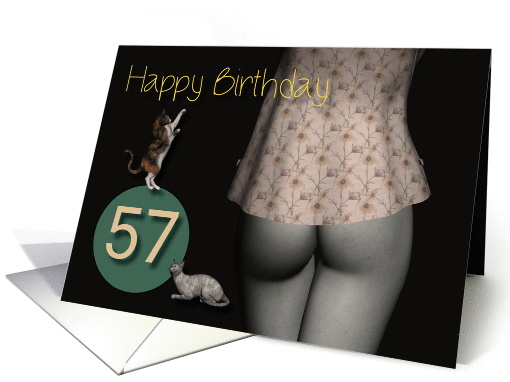 A sexy but tasteful 57th Birthday card for a very good friend with his or her age on the front and inside a text which you can customize.