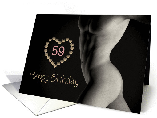A sexy but tasteful 59th Birthday card for a very good friend with his or her age on the front and inside a text which you can customize.