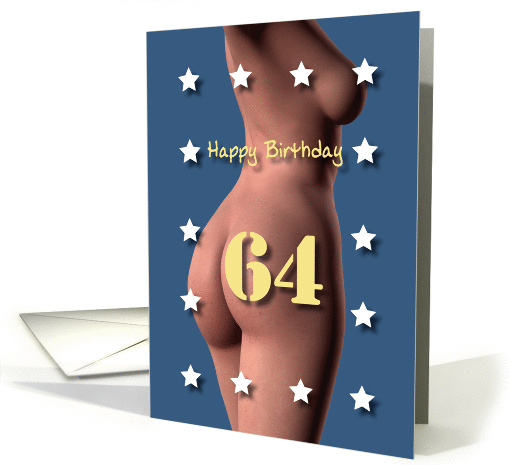 A sexy but tasteful 64th Birthday card with a nude girl surrounded by stars for a very good friend with his or her age on the front and inside a text which you can customize.