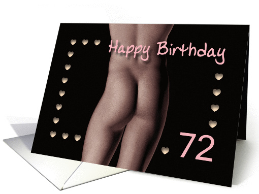 A sexy but tasteful 72nd Birthday card with a nude boy for a very good friend with his or her age on the front and inside a text wich you can customize.