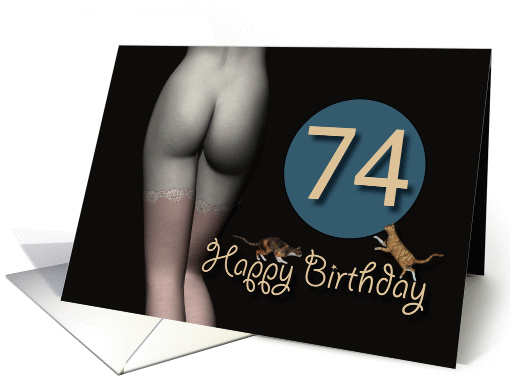 74th Birthday Sexy Girl with Stockings and playing Cats