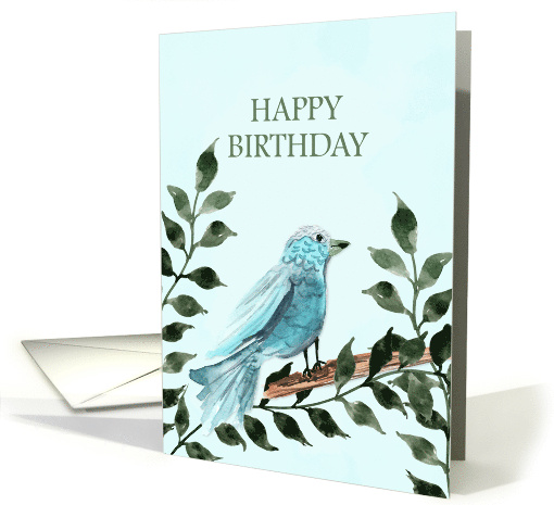 Celebrate a special birthday with this charming watercolor card featuring a sweet blue bird perched on a branch, surrounded by soft green foliage. Set against a calming pale blue background, this nature-inspired design evokes tranquility and joy. The art is done in a delicate watercolor style, perfect for bird lovers and anyone who appreciates gentle, whimsical artwork. Ideal for all ages, this card brings a heartfelt, peaceful vibe to birthdays with its graceful illustration and classic message.