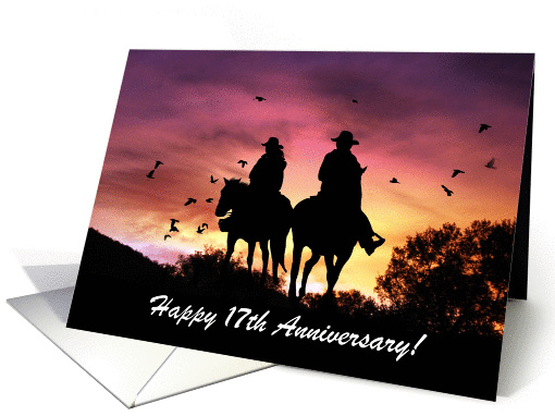 Know a couple that are celebrating 17 years of marriage? Send this cowboy and cowgirl in the sunset card wishing them many happy trails to come!