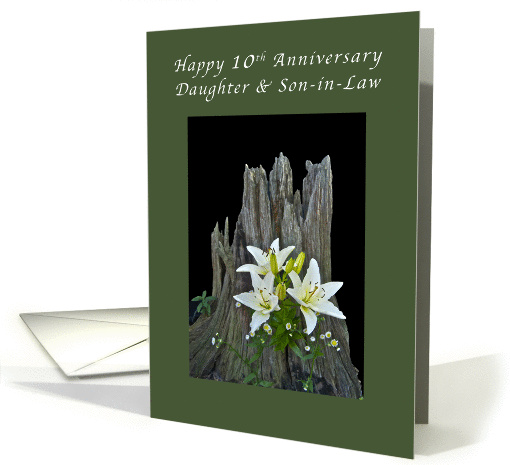 Daughter & Son-in-Law Happy 10th Anniversary, Stump with Lilies