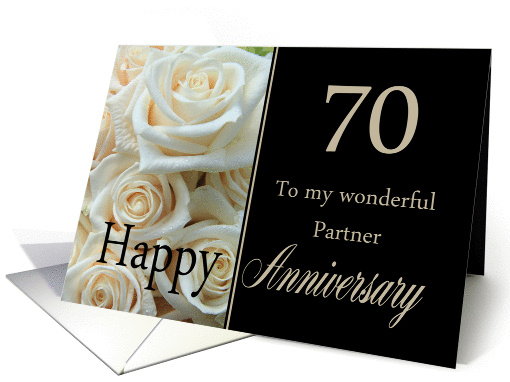70th Anniversary card for Partner - Pale pink roses