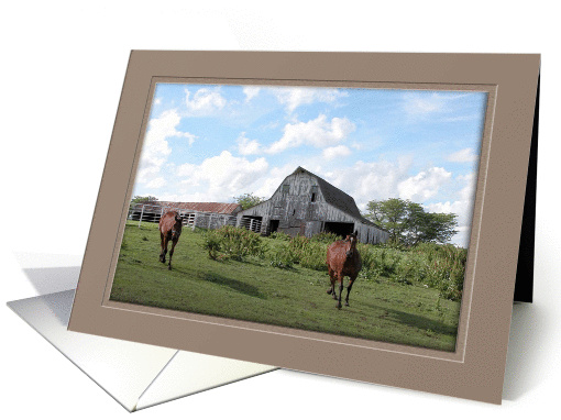 Friendly Welcome, Anniversary! Photo Taken in Missouri of the very Friendly Horses, I was really just taking a photo of the Barn, but the Horses took the spot light.