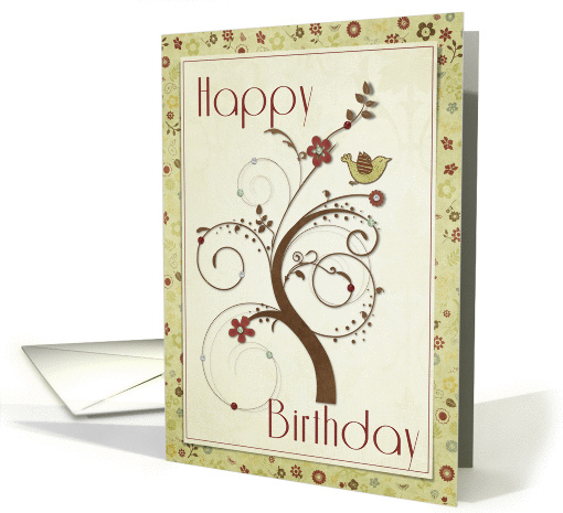 Beautiful Floral Swirl Tree Happy Birthday Card. All embellishments and Textures are rendered digitally and not tangible items.