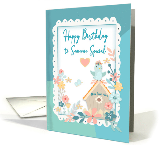 Birthday, Someone Special, Watercolor Flowers, Birdhouse