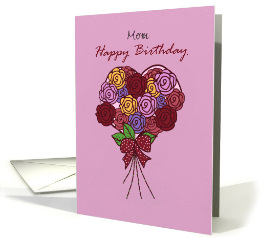 Customize a sweet Happy Birthday to you card, to her, to mom, to daughter, daughter in law, grandmother, aunt, girlfriend. This card is simple yet nice enough for all the girls in your world. Women will love getting a heart shaped bouquet of roses of many colors with a red ribbon on a feminine pink background.