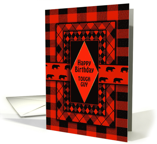 Happy Birthday TOUGH GUY Red Black Plaid Patterns