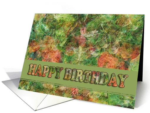 A simple and elegant garden themed card with a collage background of nasturtiums and textured with overlaid text. Great design for a gardener's birthday.