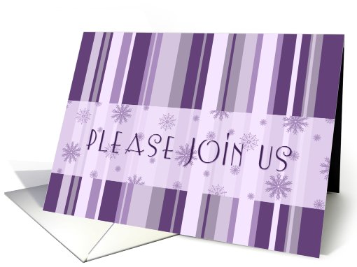 Christmas Office Party Invitation Card - Purple Stripes and Snowflakes