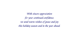 A graceful holiday design featuring a blue ornament with bow and berries on pine. Crafted for business use, it expresses gratitude and joy to valued clients during the holiday season.