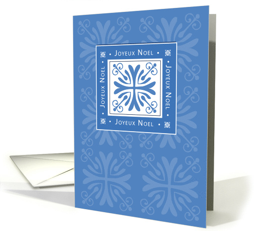 A trendy design in blue and white surrounded by the message in French, Joyeux Noel. A very elegant card to wish Merry Christmas to Vendors or Suppliers.