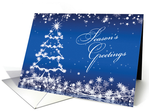 Business Christmas Vendors/Suppliers - white tree, snowflakes on blue