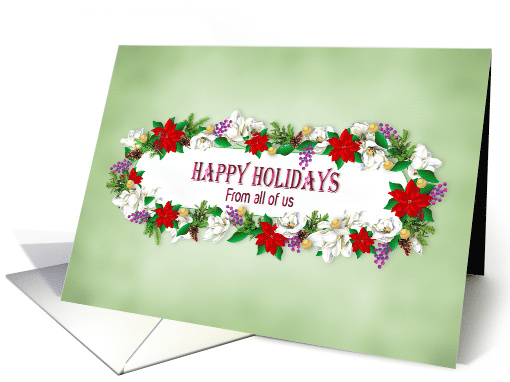 Happy Holidays From All of Us Business Floral Border with Poinsettias
