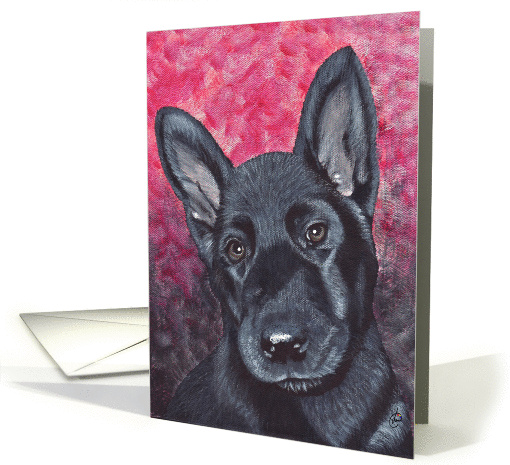 This card features an all black German Shepherd puppy painting by Lisa Charlton. Please enjoy.