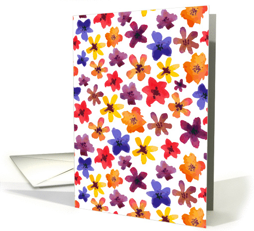 White background emphasizes the beauty of colorful flowers. This card is nice for any occasions. Watercolor illustration.