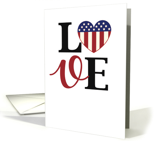 Love America! USA Every Day or special Patriotic US Holiday to celebrate your country & the people you love! Share the love with this red, white and blue Love Design. Spread this stylized Typographic word for Love in a patriotic way with stars and stripes, true blue. Unique design, loving, stylized, American.