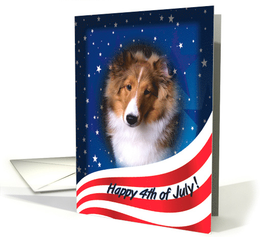 July 4th Card - featuring a Shetland Sheepdog puppy