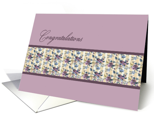 Inside of card is blank, so you can customize it to suit your requirements. This card features a floral design set against a lavender colored background.