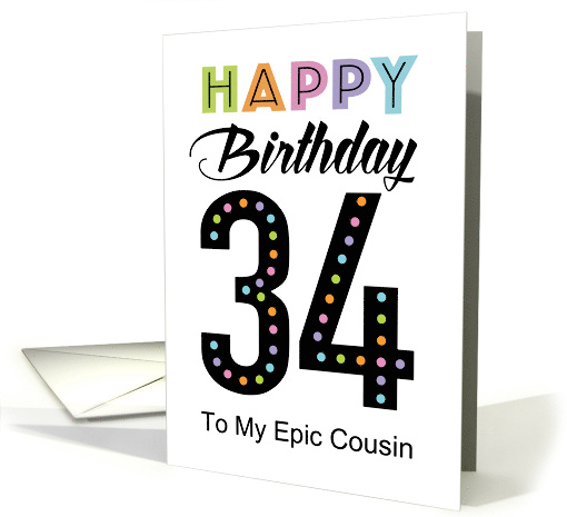 Honor your epic Cousin with a card that captures the love and admiration you have for their 34 years of life. This card is also easy to personalize for anyone who's turning 34.