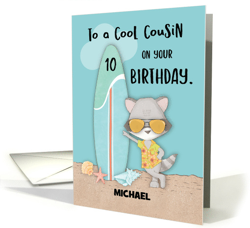Custom Name Age 10 Cousin Birthday Beach Funny Cool Raccoon Sunglasses