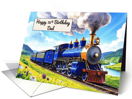 Celebrate seventy-five proud years with this graceful steam locomotive scene, where a blue and gold train glides gently through golden fields. A powerful symbol of a life lived with care, consistency, and strength, it reflects the journey your dad has taken with love and quiet dignity. At seventy-five, every mile tells a story of commitment and kindness. This heartfelt card honors who he is and everything he’s given—celebrating the impact he’s had and offering warm appreciation for the presence he continues to be in your life.