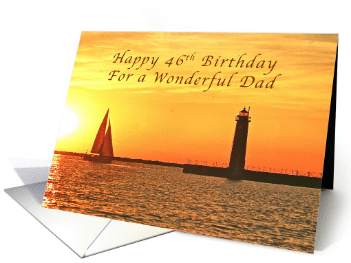 A stunning setting with a sunset over Lake Michigan, a sailboat and lighthouse. A beautiful card to wish a Father a happy 46th birthday. If your Dad loves sunsets, sailing, lighthouses or just being by the water this would be a great card for his Birthday.