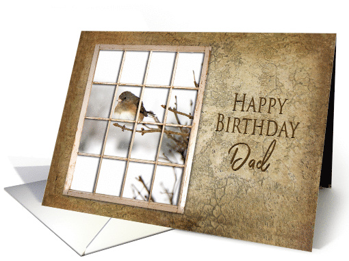Birthday, Dad, View Through Old Window Small Bird on Branch