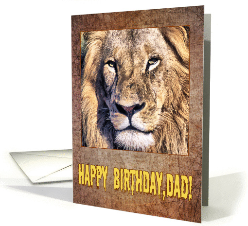Happy birthday dad greeting card, lion portrait