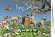All of our cards ship the following business day. So your Dad can expect to receive his birthdaycard in about 3 to 5 business days.